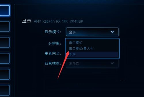 3,这时可以看到下拉菜单中有“窗口模式最大化”和“全屏”以及“普通的窗口模式”三种选项,我们按照自己的喜好进行选择即可。