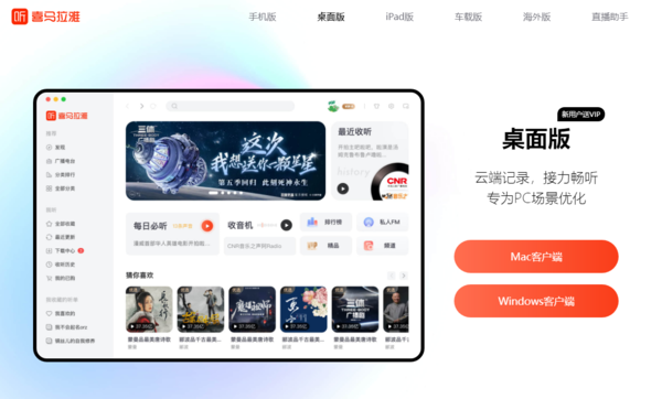 目前,在众多的有声读物、听书、有声图书软件中,喜马拉雅是为数不多可以支持电脑、手机、车载端的,其他的有声读物软件大多无法支持电脑运行。由此可见,喜马拉雅对于电脑听书用户来说,是非常友好的。