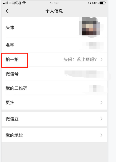 第二步:进入个人资料之后,会看到拍一拍这个功能,然后点击。