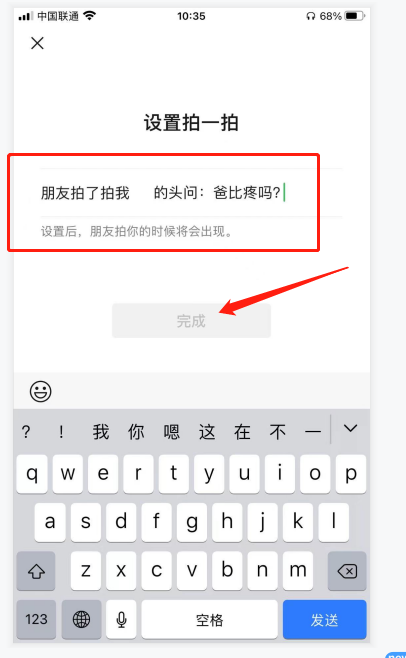 第三步:在朋友拍了拍我后面,添加个人想要添加的文字输入进去,然后点击完成这样就可以了。