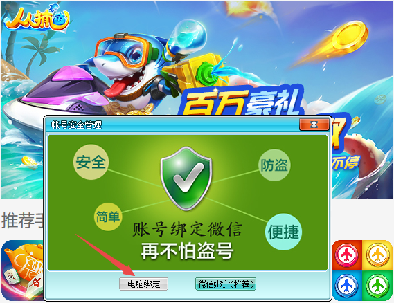 3、然后,点击【电脑绑定】按钮,即可绑定当前的电脑设备,日后账号也只能够在这一台电脑设备上登录。