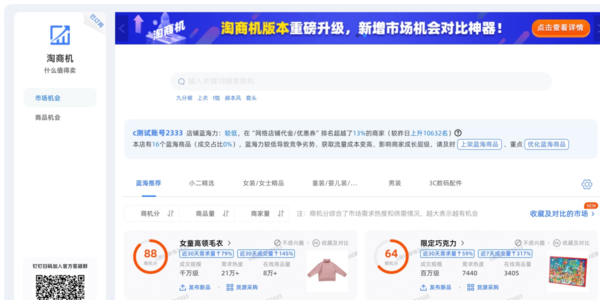 4、淘商机。做电商,更多还是看一个机会;所以在经营的过程中,我们也需要了解市场热门趋势方向,而淘商机这款软件,可以说是“电商趋势风向标”,在这里我们能了解到市场热门趋势方向,从而更好地挖掘市场、商品机会,以至于能抢占先机!