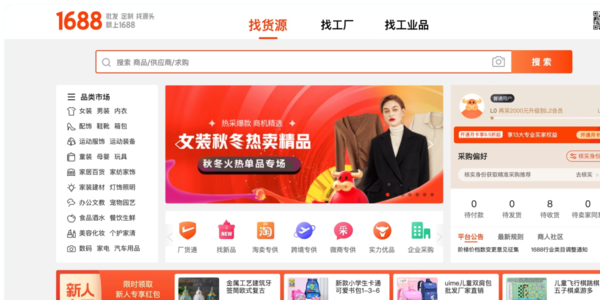 3、1688。也许有的电商是进行服务之间的交易,但目前更多电商还是交易实体货物;这样的话,就需要进货渠道,而1688,则是很不错的采购批发电商平台,在这里我们可以批量采购货源,物美价廉;这样一来,从成本方面进行节省,也是一种“提升收益”的方式。