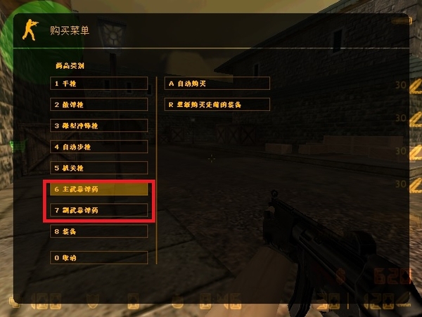 第二种方法,进入一局游戏后,我们按B进入购买界面购买武器,可以看到第6,第7行就是购买主、副武器弹药,我们可以在这个界面点击购买,更快的办法是直接按键盘数字“6”“7”进行购买。