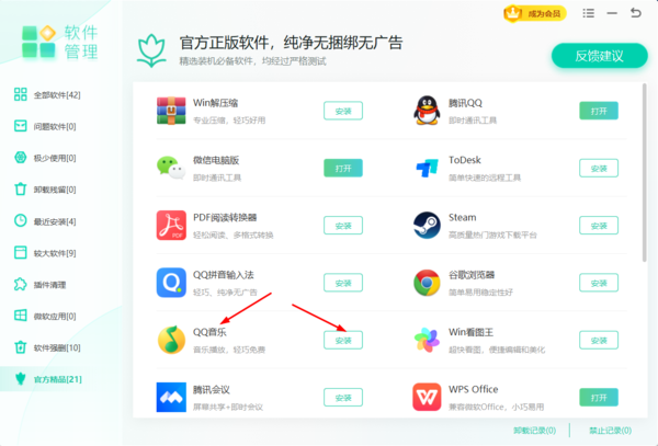 3、最后,在右侧的软件列表界面中,找到要安装的软件,最后点击其右侧的【安装】按钮,然后根据提示进行安装即可。
