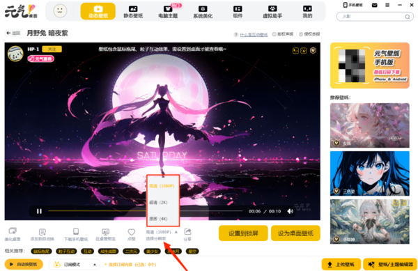 3、最后,根据自己的实际需求,来选择相应的壁纸分辨率,最后再将壁纸设置为锁屏或桌面壁纸即可。