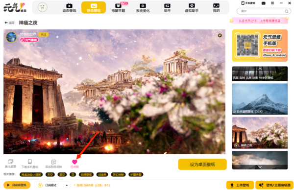 1、启动电脑端的元气桌面软件,然后找到喜欢的并且想要进行点赞的壁纸,然后点击它。