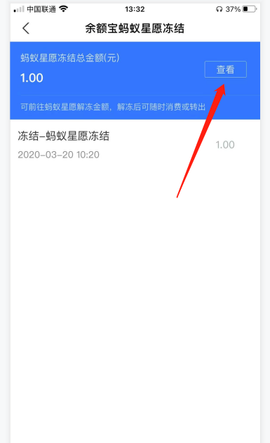 第四步:进去冻结金额明细之后,点击查看。
