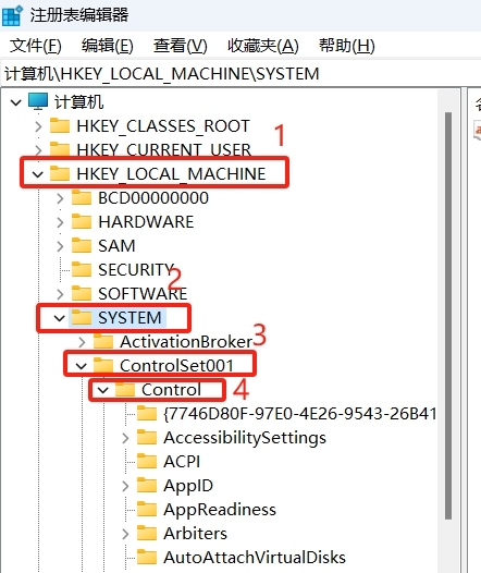 3.接着,大家请按我的步骤来到Configuration目录下,依次展开HKEY_LOCAL_MACHINE——SYSTEM——ControlSet001——Control——GraphicsDrivers——Configuration。
