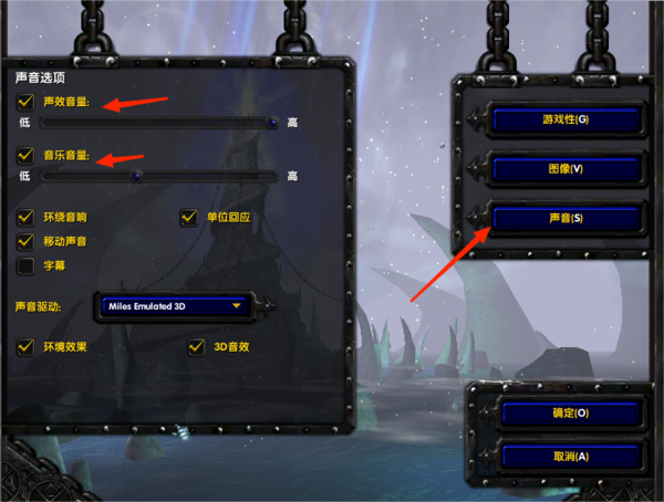 三、检查游戏的声音是否已打开,如果没打开,直接开启声音即可。