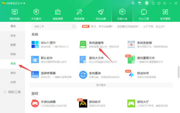 第二步,接着,在【系统】选项中,找到并点击【系统盘瘦身】功能。
