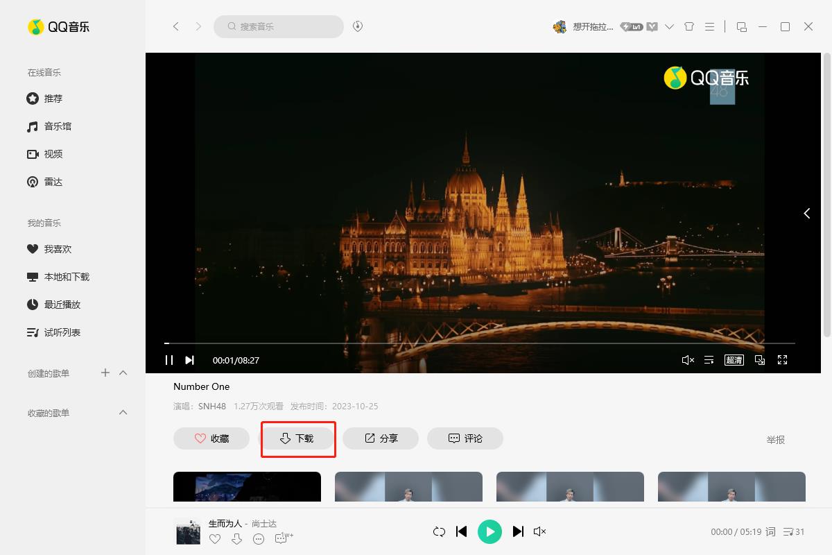 2、找到想要听的歌曲,点击之后我们进入该歌曲的播放页面,并点击下载按钮就可以了。
