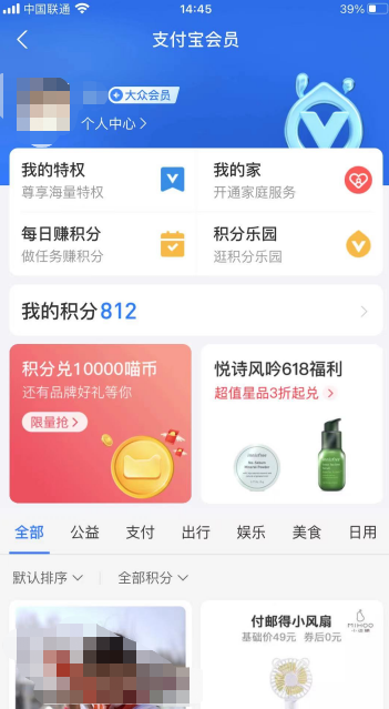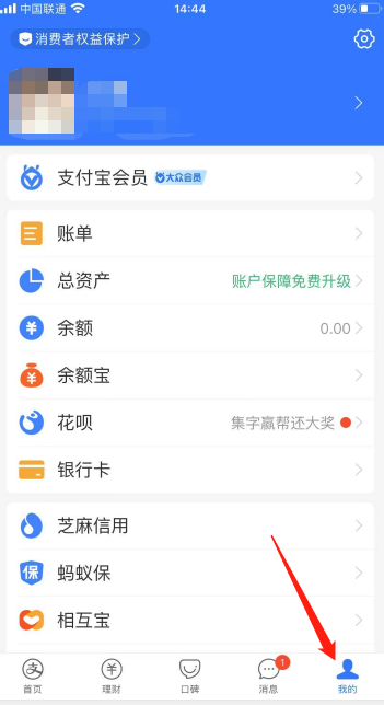 然后点击位于头像下方的支付宝会员。
