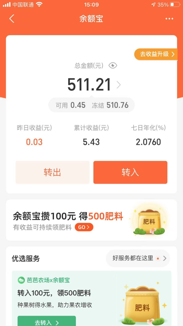 存钱的时候别存在余额,直接用(银行卡)转到余额宝,余额宝是天弘的货币基金,有利息。
