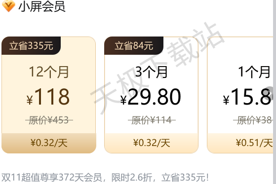 1.小屏会员(手机和电脑端购买,使用渠道为手机端,电脑端,小程序以及网页端)