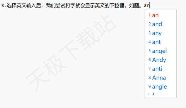 3.选择英文输入法后,我们尝试打字就会显示英文的下拉框,如图。