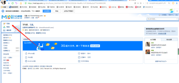 4.?进入QQ邮箱,点击页面左侧的写信。