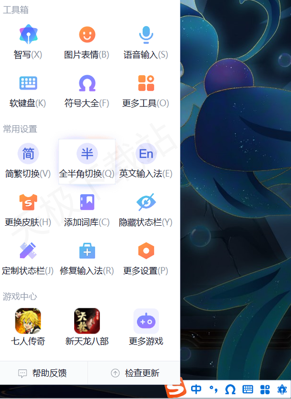3.简繁体切换,全半角切换,英文输入法等