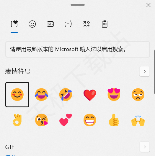 2.使用Windows符号表,如图,从左到右的选项意思分别是:最近使用,表情,GIF,颜文字,符号,粘贴板记录。操作方法是同时按住“win”和“;”或者同时按住“win”和“。”。