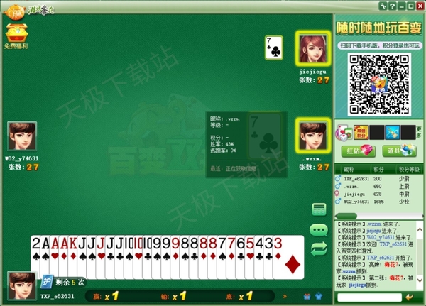 2. 百变双扣:百变双扣与千变双扣类似,但在游戏中使用的扑克牌中,使用了含有6个百搭牌的特殊牌组。这些百搭牌可以代替任何牌来组成有效的牌型,增加了游戏的变数和策略性。