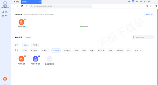 2.在应用中心找到“货源采购”,可以看到有“淘货源”和“电器采购”服务,打开“淘货源”可以进行采购,选择一件代发或者批发等。