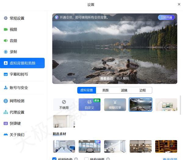 2.虚拟背景以及镜像设置,满足用户的适用场合。