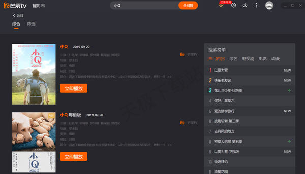 2.在上方搜索栏搜索“小Q”,第一个就是导盲犬电影小Q啦