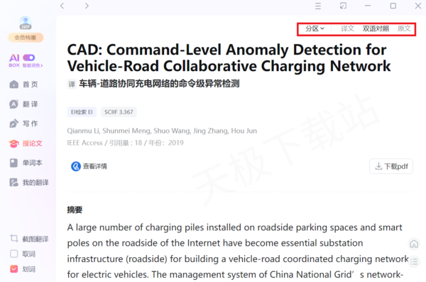 4.搜索论文,搜索自己感兴趣的论文,可以翻译全文,也可双语对照。
