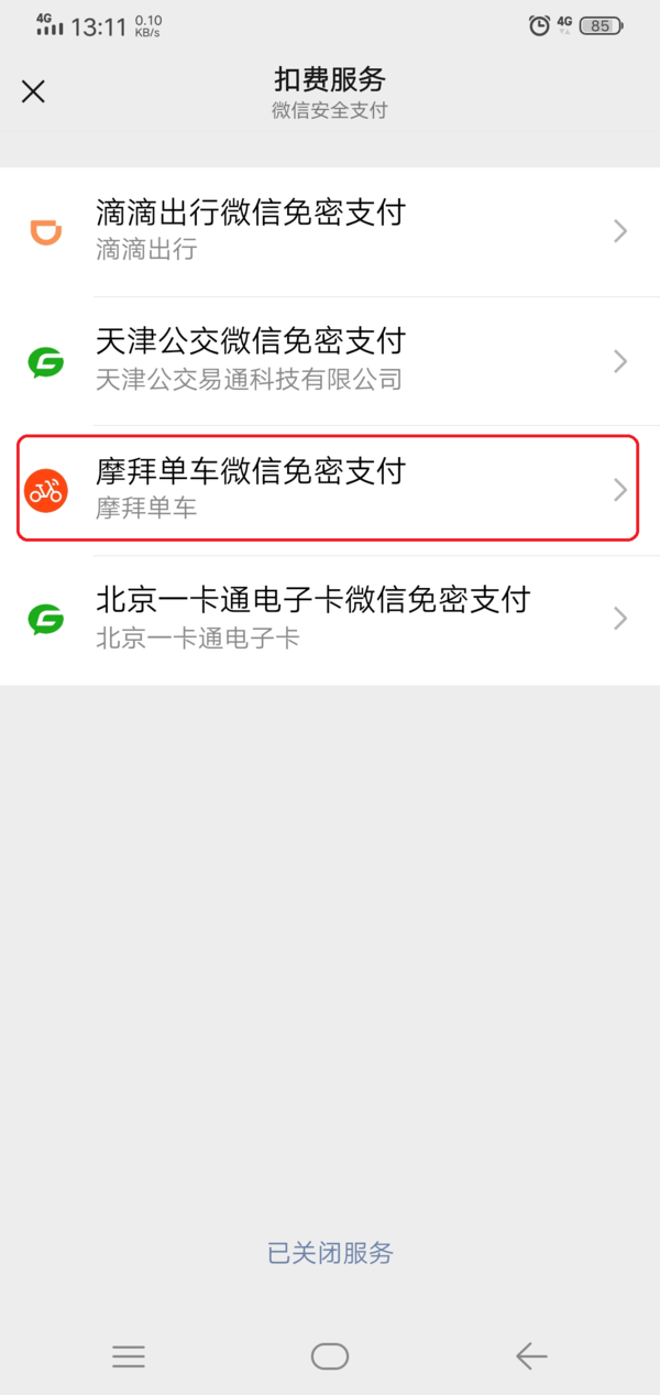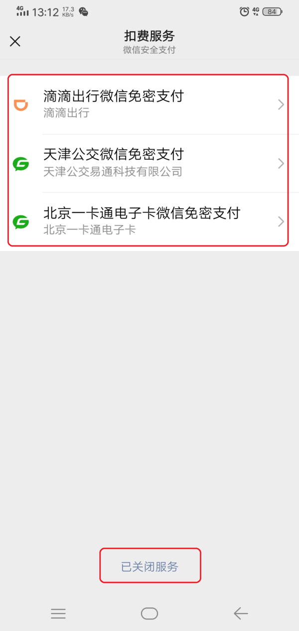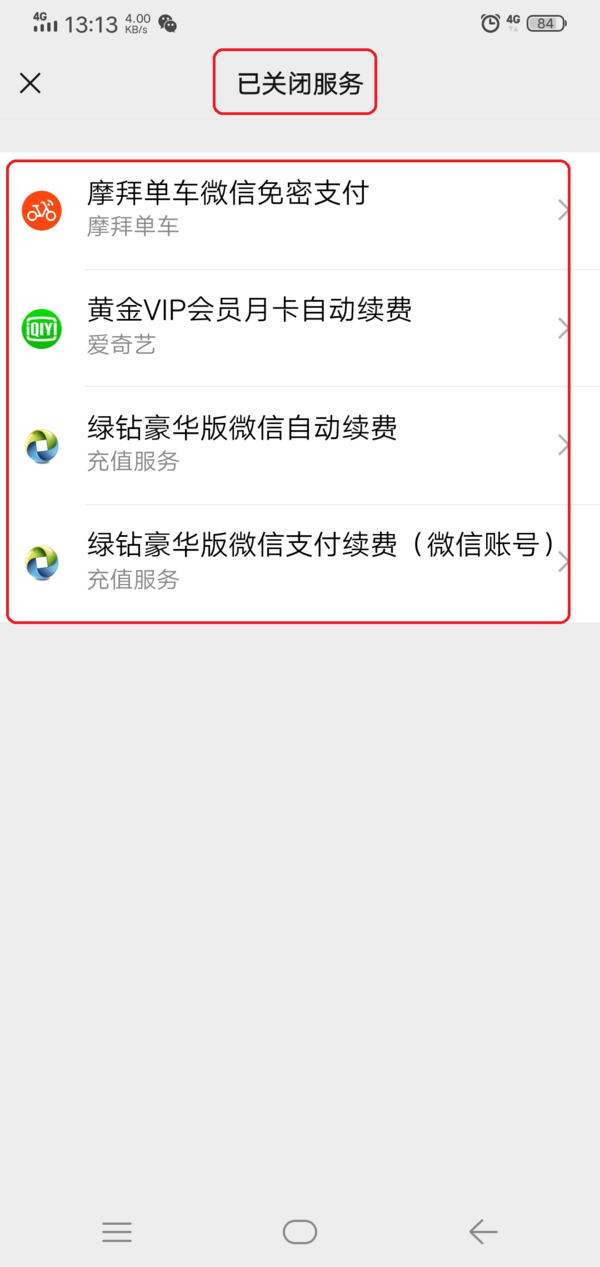 并且在扣费服务界面的底部,单击【已关闭服务】,然后我们就可以看到自己所关闭的自动扣费的服务了。