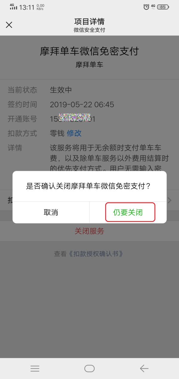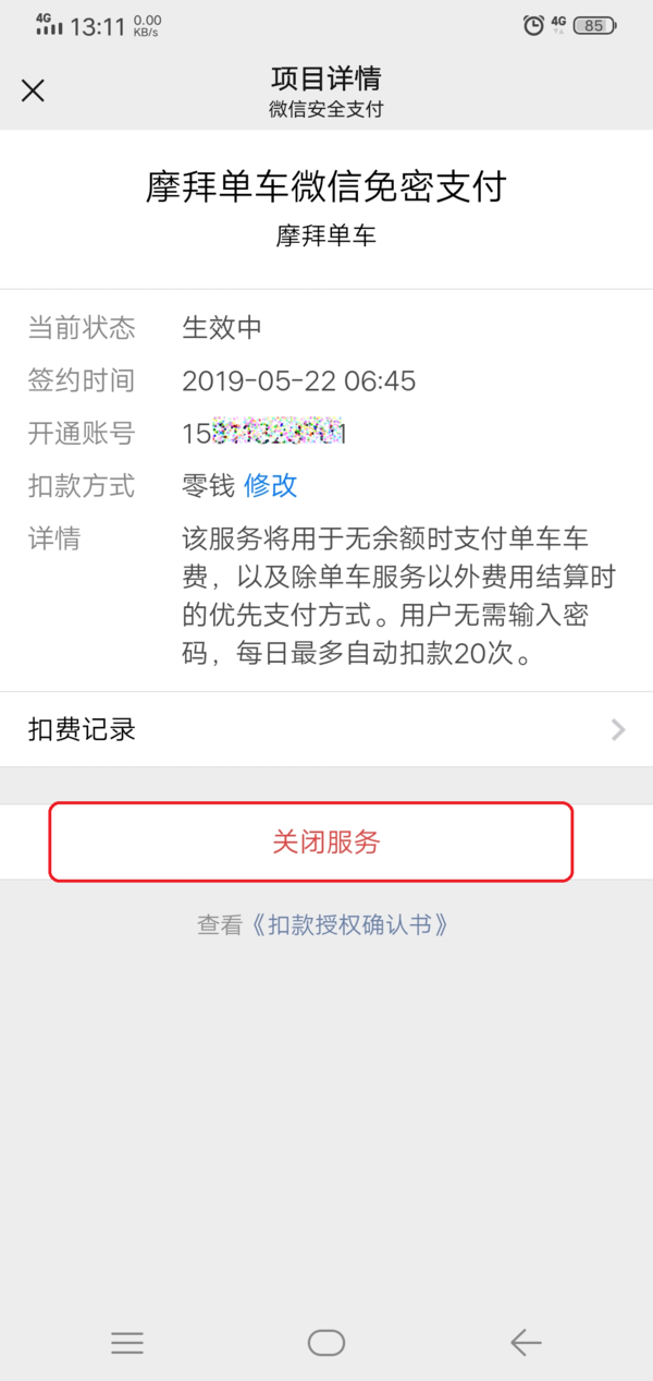 第八步,最后我们就可以关闭微信的这个服务项目的自动扣费功能了。同时,在微信的扣费服务界面中,也没有该服务了。