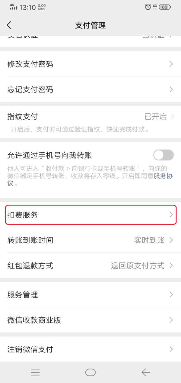 第四步,接着在弹出的支付管理界面中,找到【扣费服务】选项,并点击进入。