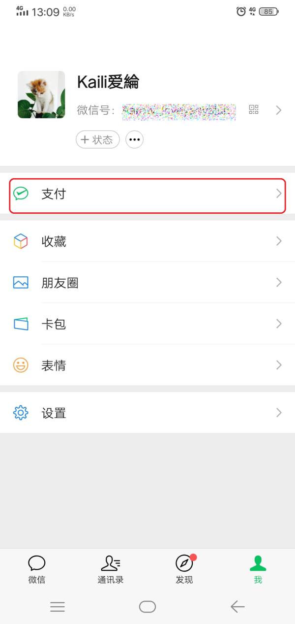 第二步,进入到个人中心界面后,找到【支付】功能,并点击打开。