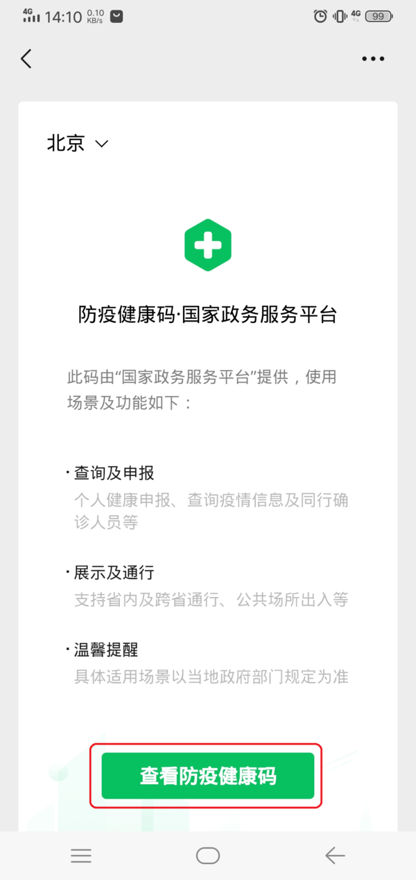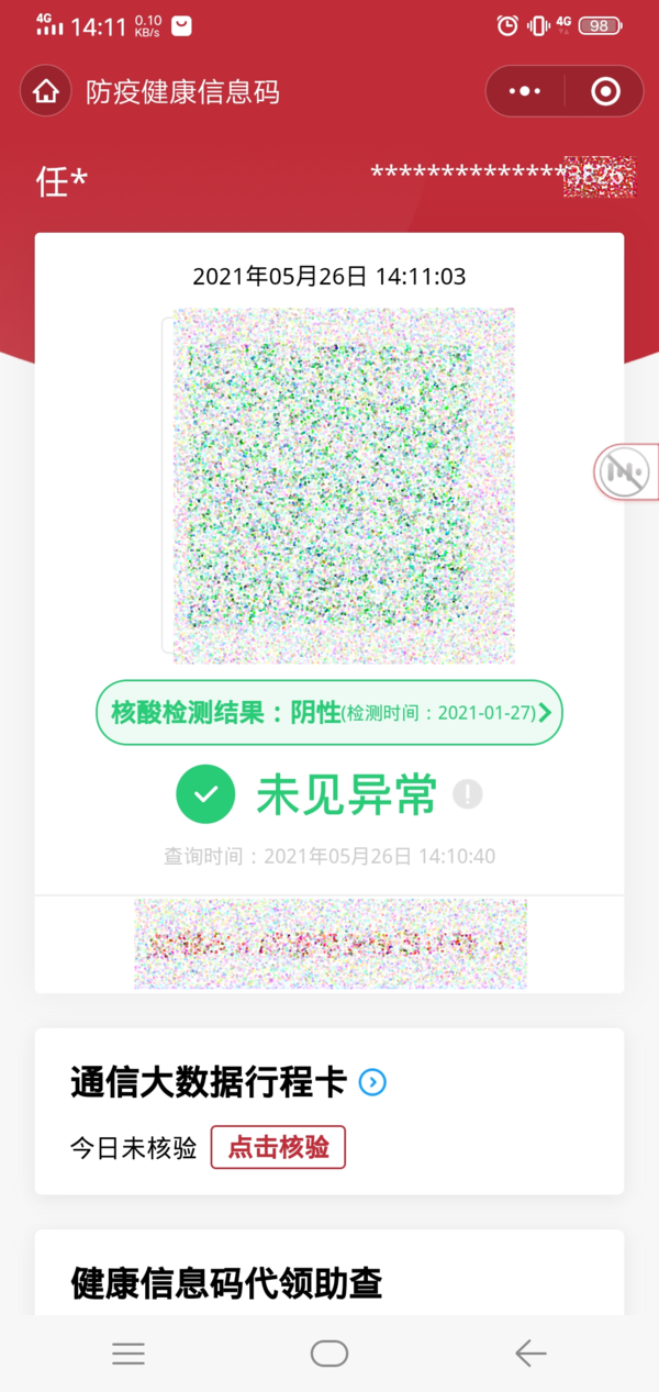 第四步,进入到微信的健康码界面后,我们直接点击【查看健康码】按钮,然后进行验证登录,最后我们就可以查看到自己的健康码信息以及各种状态了。