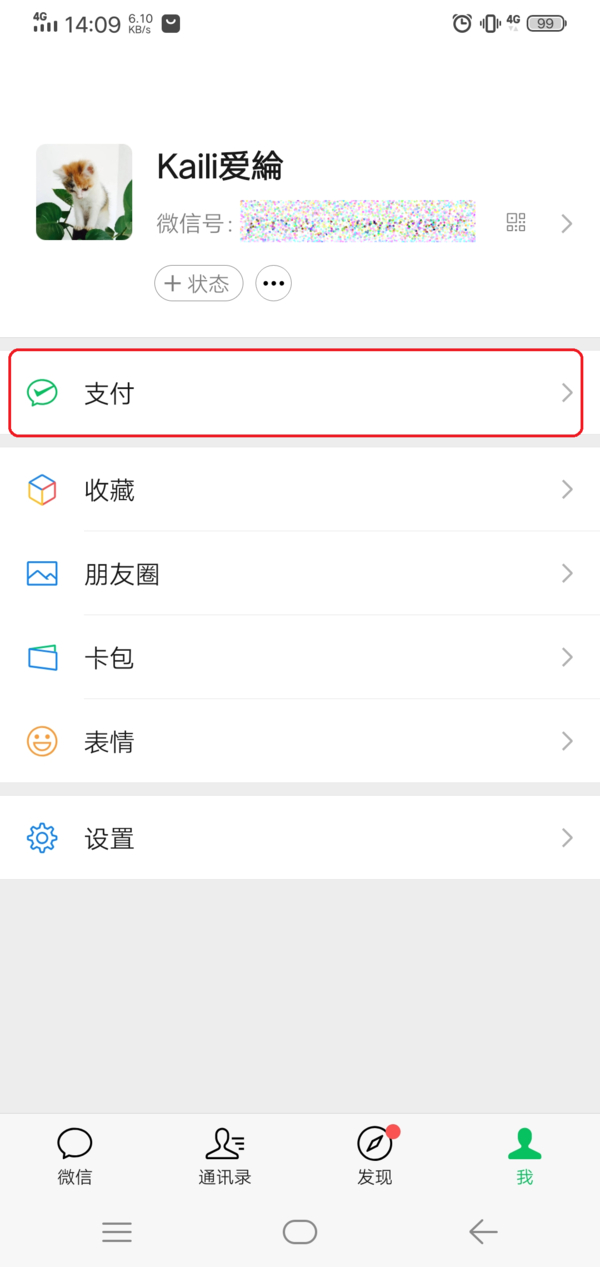 第二步,进入到个人中心界面后,在界面中找到【支付】功能,并点击进入。