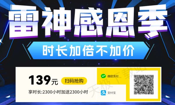 1.活动期间,139元购买2300小时,可额外送2300小时,买一送一。