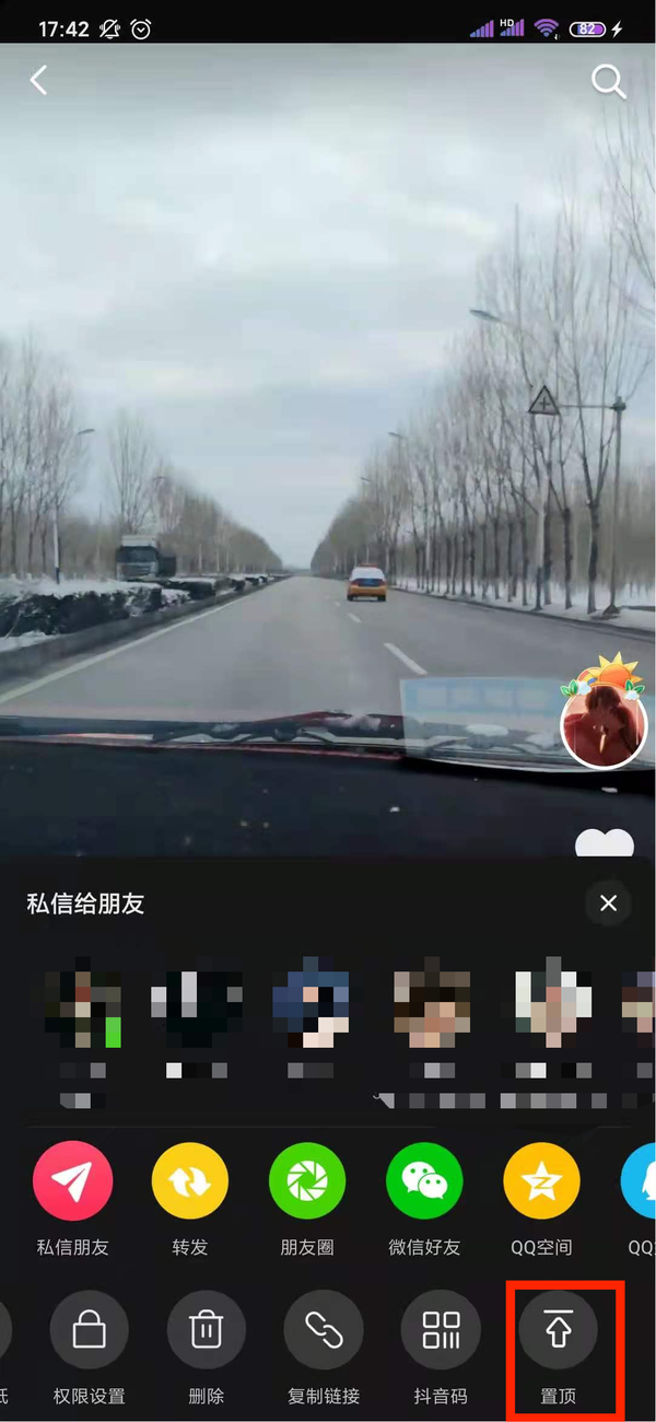 4、在最下列一排选项中点击“置顶”即可。