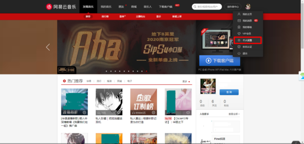 第二步,鼠标轻触右上角个人头像,点击菜单中的个人设置;