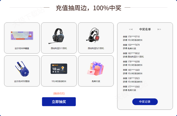 根据查找官方的资料来看,雷神加速器感恩季活动抽奖礼品有达尔优A84键盘、西伯利亚S11耳机,西伯利亚S21耳机、达尔优A950鼠标、10小时活动时长以及免单大奖。