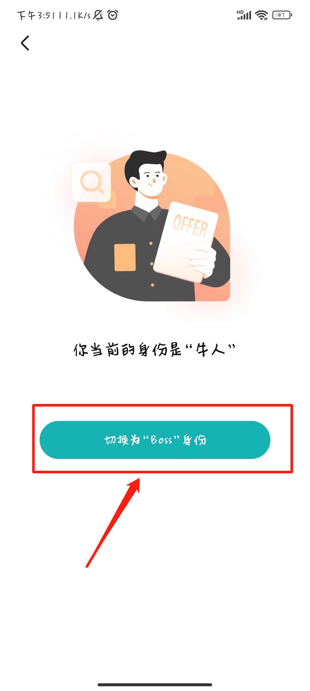 2、然后点击切换为“boss”身份