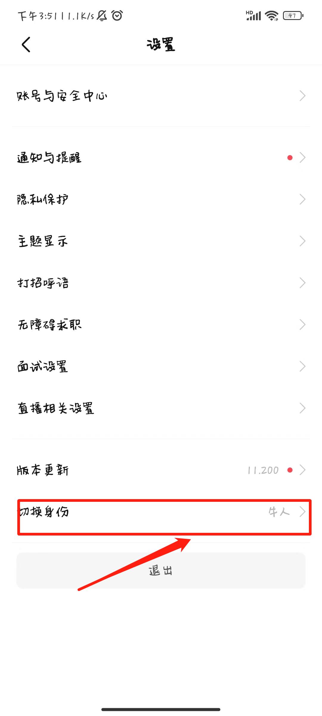 1、从设置里点击切换身份