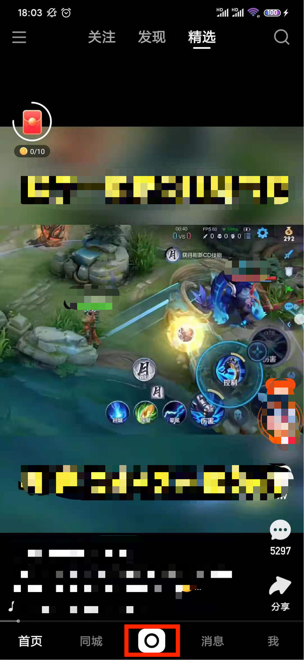 第二步,点击底部中间位置的拍摄图标,转移到直播选项;