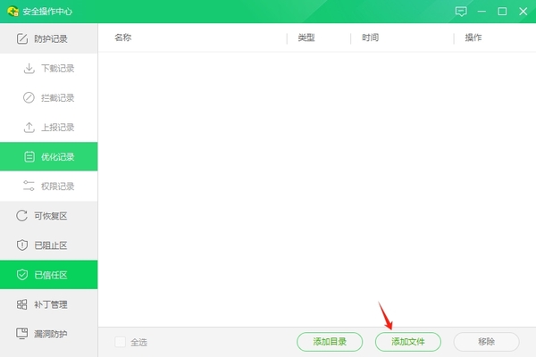 5、在这里,我们可以点击【添加文件】,将文件加入至信任区,这样就不怕360安全卫士对其进行二次拦截了。
