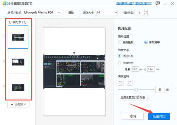 4、照片添加好以后,大家在左侧的【打印列表】中就可以看到要批量打印的照片了,最后点击界面右下角的【批量打印】按钮进行打印即可。