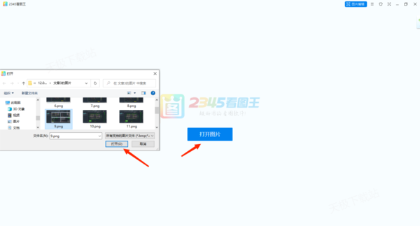 1、启动电脑端的2345看图王软件,然后点击界面中间的【打开图片】按钮,先打开一张需要打印的照片。