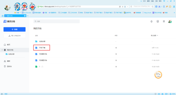 第二步,账号登录成功后,在【我的文档】中找到想要进行共享的文档,并点击打开它。