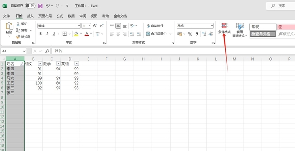 3、对于【姓名】这一列,我们还可以为其加上条件格式,将重复的进行高亮,以更好的筛选出重复项(面对数据量较大的时候非常好用);