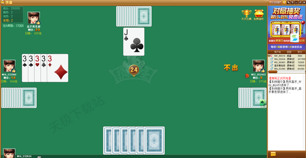 3.广东掼蛋:在广东地区比较流行,有一些独特的规则,比如,你可以打低于上家打出的牌的点数加一或两点的牌,不同打法最后的赔率和奖励也不同。