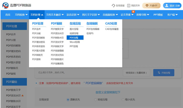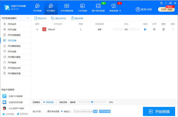 3.?转换压缩:打开迅捷PDF转换器,点击PDF的其他操作,选择PDF压缩功能,把PDF文件添加到转换器中,一键开始转】这样就可以了,随后能够在原文件夹中找到压缩过后的PDF文件。