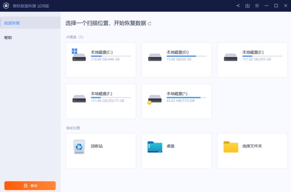傲软数据恢复,在备份方面还是很有优势的,因为这款软件可以帮我们实现全盘备份,即我们不用再自己找到目标文件备份;这对于办公电脑来说,还是很有效的;此外,傲软数据恢复还能在我们不慎丢失数据或是重装系统之后,一键进行数据恢复,非常方便。