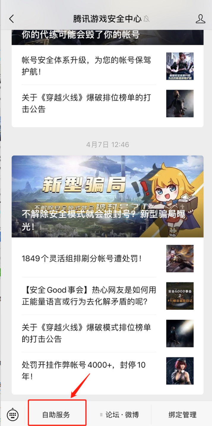 使用微信扫一扫关注“腾讯游戏安全中心”微信公众号